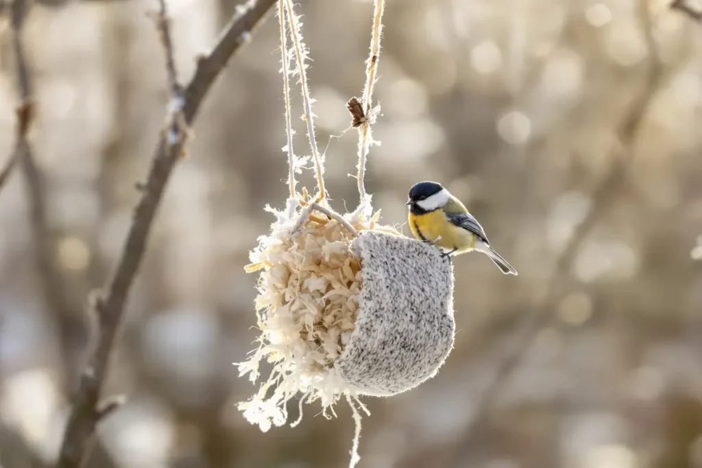 - Mésanges (bleues et charbonnières), friandes de fibres douces